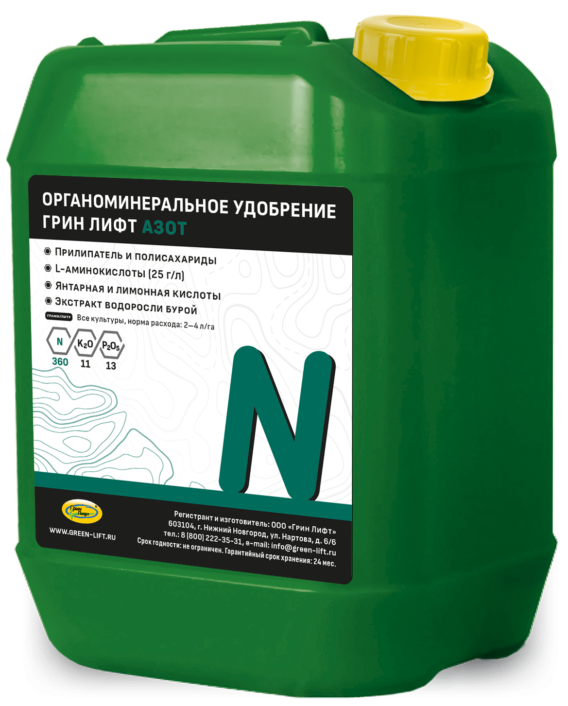 Азот является структурным компонентом всех аминокислот, белков, ферментов и других веществ, без которых невозможно существование растительного организма. Это ключевой элемент, определяющий уровень урожайности культур. Дефицит азота заметно ослабляет рост растений. Внекорневая подкормка — самый быстрый и эффективный способ обеспечить растения азотным питанием в критические фазы развития. Для этого специалистами компании «Грин Лифт» разработана комплексная азотная подкормка, которая показывает видимый результат.